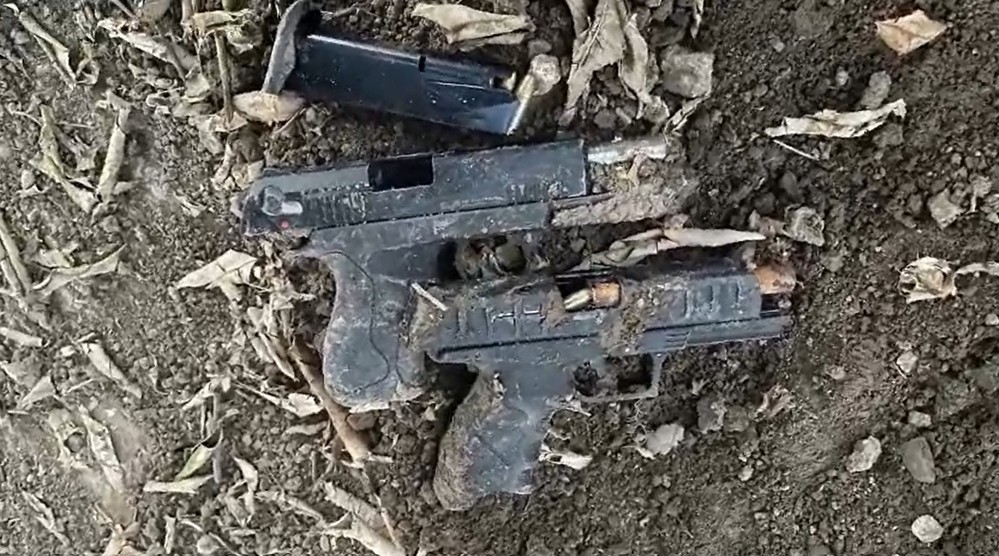 Aynı zamanda, saldırı anında giydikleri kıyafetler ile saldırıda kullandıkları tabancaların da toprağın üzerinde atılmış bir şekilde ele geçirildiği bildirildi.