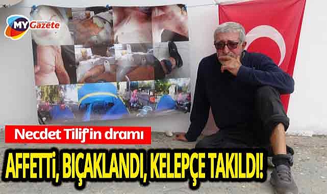 Necdet Tilif: "Yine zulüm devam ediyor. Beni acıtan bıçak darbeleri değil, beni acıtan şu kelepçeyi takan. Bana 25 Mayıs'ta 19 bıçak vuranın talebi üzerine alınıyor. Eve bin metre yaklaşamıyorum. Bu kelepçeyi, evi rahat rahat satabilmek için taktılar."