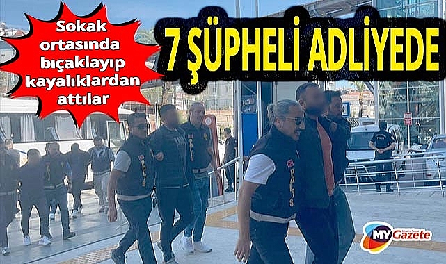 Emniyetteki işlemleri tamamlanan 7 şüpheli, öğle saatlerinde geniş güvenlik önlemleri altında Alanya Adliyesi'ne sevk edildi.