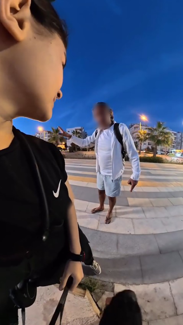 Kızın, "Köpeğime dokunma" diyerek şahsı itmesi üzerine saldırgan tavırlar sergileyen şahıs, küfür ve tehditlerine devam etti.