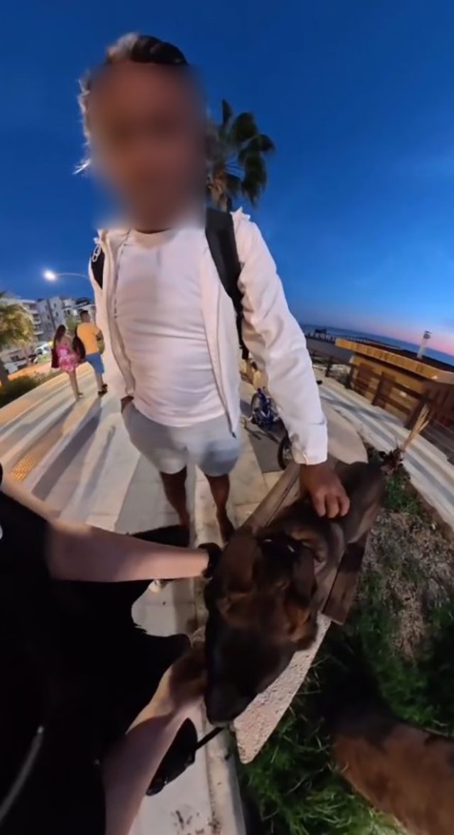 Sosyal medyada hızla yayılan görüntülere göre, şahıs önce köpeğe yaklaşmak istedi. Köpeğin sahibi olan genç kızın İngilizce olarak "Uzak dur, ısırabilir, gider misin?" uyarısına rağmen şahıs uzaklaşmadı.
