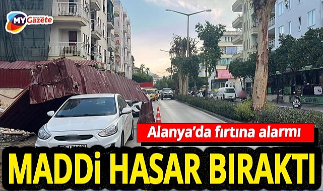 Antalya haber... Alanya Hasan Akçalıoğlu Caddesi’nde meydana gelen olayda, fırtına nedeniyle savrulan demir korkuluklar Hyundai marka bir aracın üzerine düşerek ciddi hasar bıraktı.