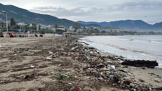 Yağış sonrası sabah saatlerinde selin bıraktığı tahribat gün yüzüne çıktı. Galip Dere Plajı’nda, dağlardan sürüklenen ve denizden taşan çok miktarda çöp ve atık kıyıya vurdu. Temizlik ekipleri bölgede çalışmalara başladı.