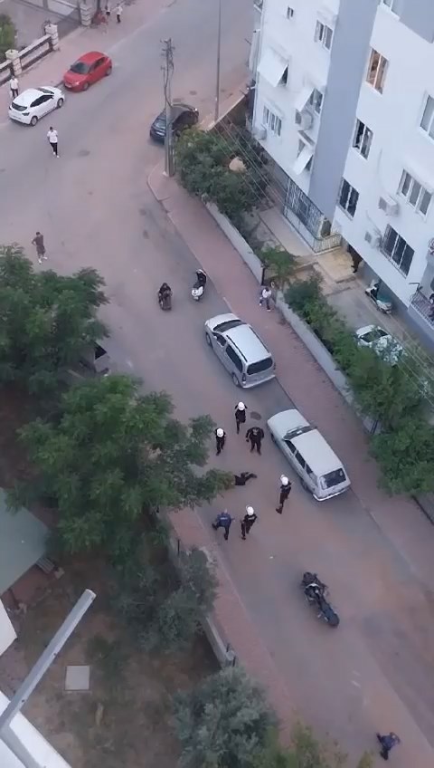 Tunahan KIR/ANTALYA, (DHA)- ANTALYA'da psikolojik sorunları olduğu öğrenilen Kerim K. (38), tartıştığı annesi Feride K.'yı (62) eve kilitledi. Polis ekiplerinin uyarılarına rağmen elindeki bıçakları bırakmayan ve ekiplere de saldırıp zor anlar yaşatan Kerim K., bacağından vurularak etkisiz hale getirildi. Olay, saat 20.00 sıralarında Muratpaşa ilçesine bağlı Kızıltoprak Mahallesi 1001 sokak üzerinde bulunan apartmanda meydana geldi. İddiaya göre psikolojik sorunları olduğu öğrenilen Kerim K. ile alzaymır hastası yürüme engelli annesi Feride K. (62) arasında evin balkonunda tartışma çıktı. Ardından annesini eve kilitleyen Kerim K., elindeki bıçakla rehin aldı ve mahalle sakinlerini tehdit etmeye başladı. Olayı görenlerin ihbarıyla bölgeye çok sayıda polis ve sağlık ekipleri sevk edildi.'ELİNDEKİ BIÇAKLA ANNESİNİ REHİN ALDI, EKİPLERE SALDIRDI'Olay yerine ilk olarak gelen Antalya Emniyet Müdürlüğü'ne bağlı Motorize Yunus Timleri, Kerim K.’yı elindeki bıçakları yere bırakması için uyardı. Tüm uyarılara rağmen rehin aldığı tekerlekli sandalyedeki annesi Feride K.'yı tehdit etmeye devam eden, elindeki bıçakları bırakmayan ve polis ekiplerine bıçakla saldıran Kerim K., polis ekipleri tarafından bacağından vurularak etkisiz hale getirildi. Sol bacağından vurulan Kerim K., bölgedeki özel bir hastaneye sevk edildi. CEP TELEFONU İLE KAYDEDİLDİYaşanan olay ise bir vatandaş tarafından saniye saniye kaydedildi. Cep telefonu ile kaydedilen görüntülerde Kerim K.’nın polis ekiplerine saldırması ve bacağından vurularak etkisiz hale getirilmesi görüntülere yansıdı.'ABLAMA SALDIRMIŞ POLİSLER DE ETKİSİZ HALE GETİRMİŞ'Olayın ardından rehin alınan Feride K.'nın ağabeyi Arif Tanrıver (54), "Yeğenimin psikolojisi bozuktu. Ablama saldırmış. Direndiği için polisler gelmiş. Polisler de saldırdığı için ve annesine karşı geldiği için etkisiz hale getirmiş. Havaya 3 kere ateş etmişler en sonunda da ayağından vurmak zorunda kalmışlar. Psikolojisi kötü olduğu için 10 senedir ilaç kullanıyor" diye konuştu. (DHA)