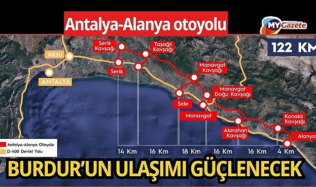 Antalya ile Alanya arasındaki ulaşımı modern mühendislik çözümleriyle güçlendirecek proje kapsamında, 84 kilometre ana gövde, 38 kilometre bağlantı yolu olmak üzere toplam 122 kilometrelik otoyol inşa edilecek. Projede 7 farklı kavşak, 5 tünel, 16 viyadük ve 4 otoyol hizmet tesisi yer alacak.