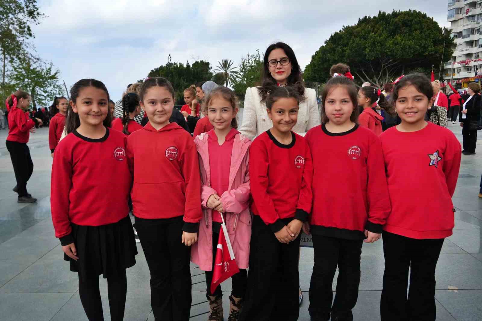23 Nisan Ulusal Egemenlik ve Çocuk Bayramı dolayısıyla Antalya’daki ilk tören, Cumhuriyet Meydanı’nda bulunan Ulusal Yükseliş Anıtı önünde gerçekleştirildi. Türkiye Büyük Millet Meclisi’nin açılışının 106’ncı yılı dolayısıyla düzenlenen törende, öğrenciler ellerinde Türk bayraklarıyla alanda yer aldı. Kırmızı-beyaz kıyafetleriyle bayram sevincini yansıtan öğrenciler, saygı duruşunda bulunup İstiklal Marşı’nı okudu. Töreni, yerli ve yabancı vatandaşlar da ilgiyle izledi.