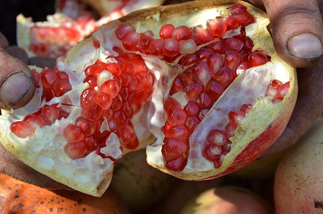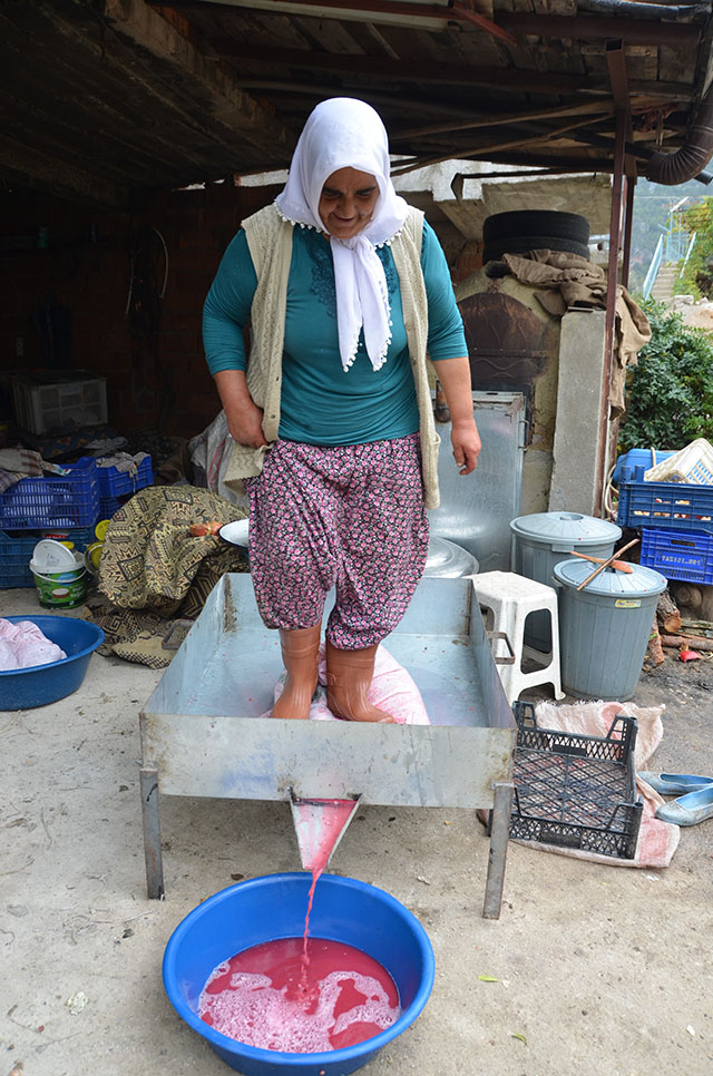 - Şırahanede Ezme: Taneler çuvallara konularak, özel olarak yaptırılan küçük şırahanelerde tepeleme yöntemiyle eziliyor ve nar suyu çıkarılıyor.