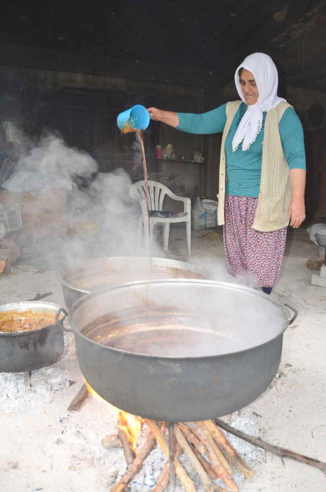 - Odun Ateşinde Kaynatma: Elde edilen saf nar suyu süzüldükten sonra, bakır tavalarda, odun ateşinde 5-6 saat boyunca koyulaşıncaya kadar kaynatılıyor.