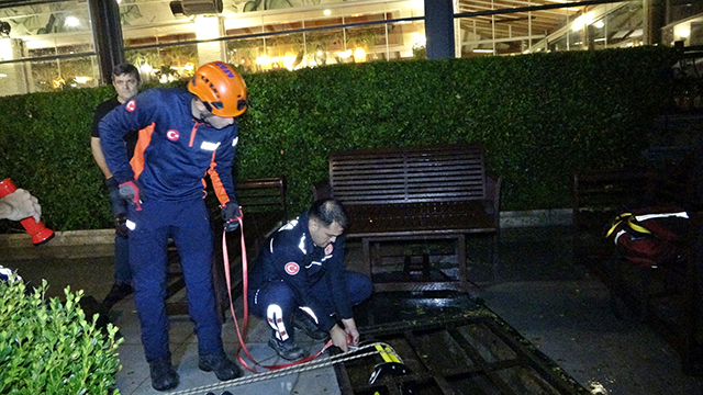 Kara ekipleri, gençlere ulaşmak için yaratıcı bir çözüm buldu. Atatürk Parkı içerisindeki bir restoranın bahçesinde bulunan merdivenli geçit, kurtarma operasyonunun kilit noktası oldu.- Ekipler, yaklaşık 25 metre yükseklikten mağaranın bulunduğu alana 10 metre kadar yaklaştı.