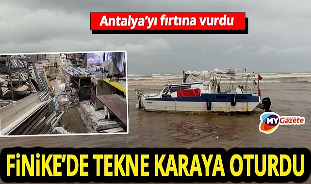Finike ilçesinde açıkta demirli bulunan özel bir tekne, şiddetli rüzgarın etkisiyle kontrolsüz şekilde sürüklenerek Finike Meydan Sahil Bandı’nda iskele yakınlarında karaya oturdu. Olayda can kaybı yaşanmazken teknede maddi hasar oluştu.