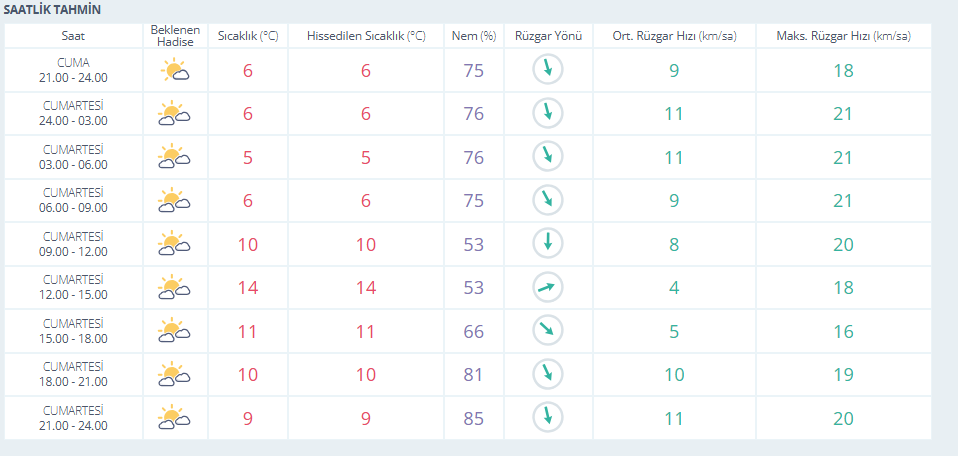 | Parçalı zamanla çok bulutlu, gece ve sabah saatleri iç kesimler puslu yer yer sisli, öğle saatlerinden itibaren Muğla çevreleri aralıklı sağanak ve gök gürültülü sağanak yağışlı geçeceği tahmin ediliyor. HAVA SICAKLIĞI: Gece sıcaklıklarının 2 ila 4, gündüz sıcaklıklarının 1 ila 3 derece artması bekleniyor. RÜZGAR: Güney ve doğu, öğle saatlerine kadar Antalya sahil kesimleri kuzey yönlerden hafif, zaman zaman orta kuvvette esmesi bekleniyor. |