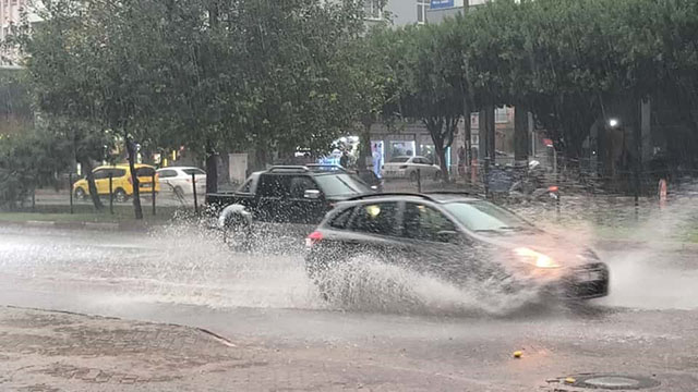 Yağışla birlikte birçok cadde ve bulvarda su birikintileri oluştu.
