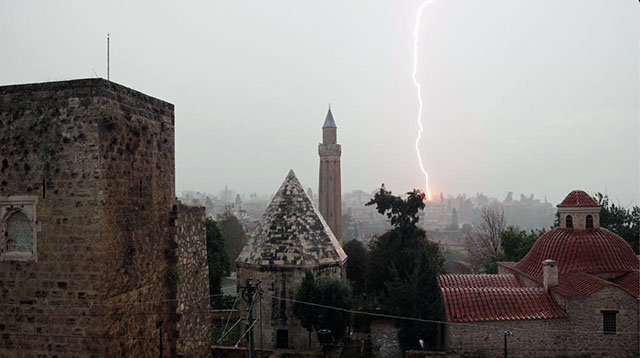 Antalya haber… Öğleye doğru başlayan sağanak yağış, kısa sürede etkisini artırarak doluya dönüştü. Yıldırımların eşlik ettiği yağış, kentte yaşamı olumsuz etkiledi. Kent merkezinde, özellikle Kaleiçi ve çevresinde art arda çakan yıldırımlar gökyüzünü aydınlatırken, bazı anlar kameralara da yansıdı.