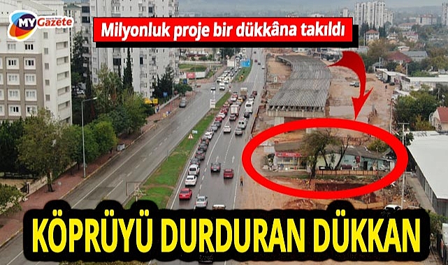 Yıllardır bölgede faaliyet gösteren bir pideci dükkanının taşınmaması nedeniyle köprünün ayaklarının oturacağı fore kazık çalışmaları yapılamadı ve inşaat durduruldu.
