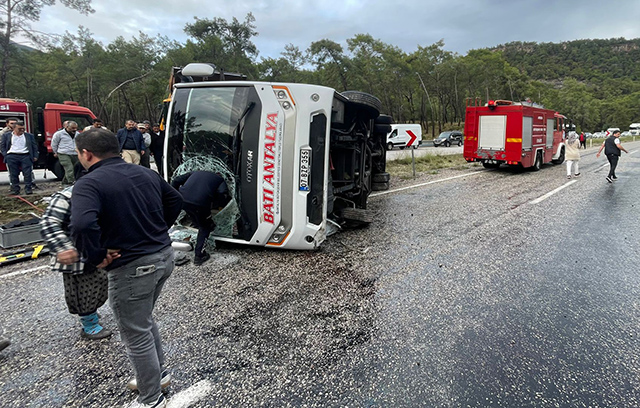 Kaza nedeniyle Antalya-Kumluca karayolunda kısa süreli trafik yoğunluğu oluşurken, devrilen midibüsün çekici yardımıyla kaldırılmasının ardından trafik yeniden normale döndü.