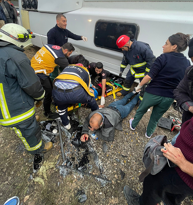 Kazanın ardından çevredeki vatandaşların ihbarı üzerine olay yerine Antalya Büyükşehir Belediyesi itfaiye ekipleri, polis ve sağlık ekipleri sevk edildi. Devrilen midibüste sıkışan 2 yaralı, itfaiye ekiplerinin titiz çalışmasıyla bulundukları yerden çıkarıldı.