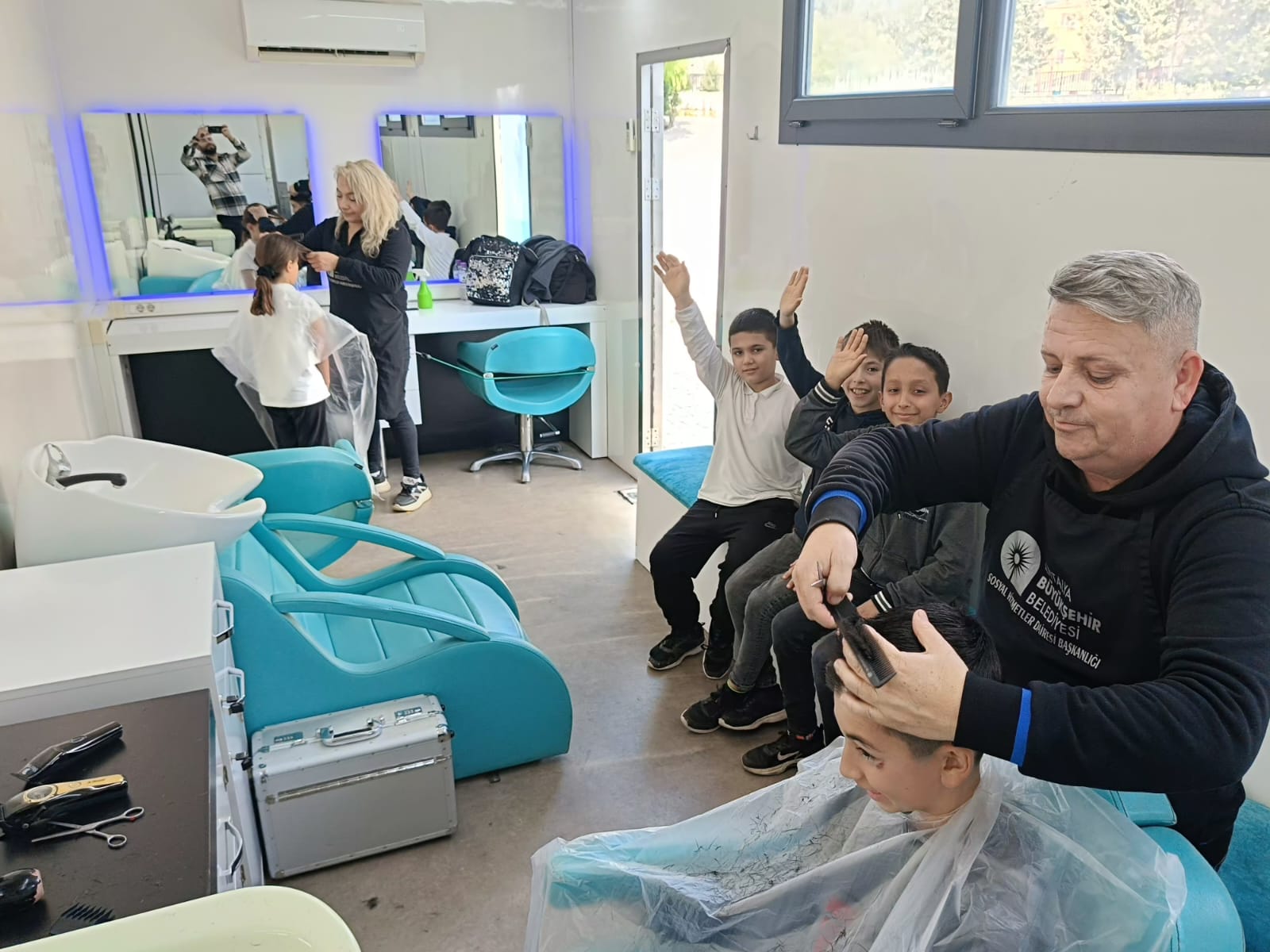 Antalya Büyükşehir Belediyesi Sosyal Hizmetler Dairesi Başkanlığı’na bağlı mobil kuaför Tırı, kırsal mahallerde vatandaşlara ulaşmaya devam ediyor. Mobil Kuaför Tırı, Elmalı ve Kaş’ta okullara giderek öğrencilerin ücretsiz saç kesimi ve kişisel bakımlarını gerçekleştirdi.