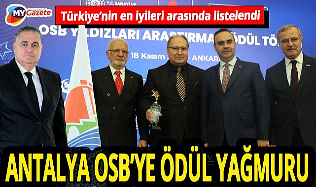 Antalya haber... Araştırma sonuçlarına göre Antalya OSB, Türkiye genelinde “En Çok Katkı Veren OSB” kategorisinde ilk 10’a girmeyi başardı. Ödül, Bölge Müdürü İlhan Metin tarafından Bakan Mehmet Fatih Kacır ve OSBÜK Başkanı Memiş Kütükcü’nün elinden alındı.
