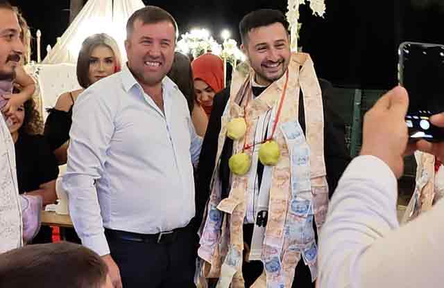 Antalya haber... Arslan ailesinin kızı Hatice Hacer ile Kaya ailesinin oğlu Halil’in düğün töreninin takı merasiminde renkli görüntüler oluştu. Düğüne katılanların takıları takmaları esnasında damadın bir arkadaşı, yanında getirdiği poşetten çıkardığı kırmızı kurdeleye bağlı 3 ayvayı damadın boynuna astı. Gayrimenkul ve emlak komisyonculuğu sektöründe iş yapan damadın kendisi gibi emlak komisyoncusu arkadaşının 3 ayvayı damadın boynuna asarken “Şimdi ayvayı yedinö şeklindeki esprisi, orada bulunanları güldürdü.
