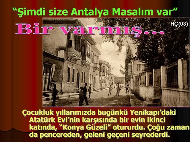 Kadınlar sokakta yoktu. Kadınlar evlerindeydiler. Antalyalı kadınlar oyun oynamayı çok sever. Şıkır şıkır evde kağıt oynamayı çok severdi kadınlar kabul günlerinde. Sosyal yaşamda yerleri pek fazla yoktu. Bana kızmasınlar ama öyleydi. Örgü örme, birbirlerine gezmeye gitme vardı tek. Kız enstitüsü vardı bir de. Oraya ben de gittim. Moda, çiçek, dikiş derslerine evli hanımlardan da giden olurdu. Yaşamlarına renk gelsin diye giderlerdi.