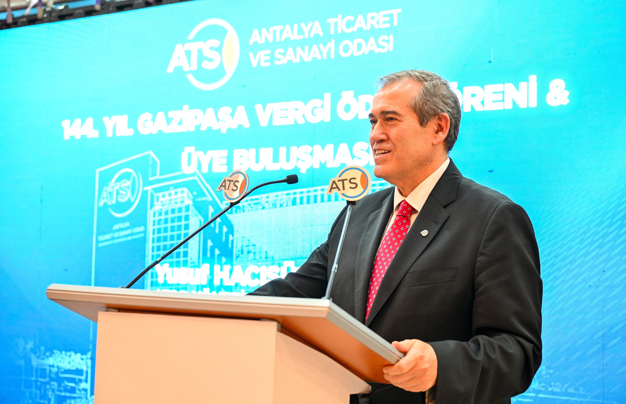 Törenin açılış konuşmasını yapan atso başkanı Hacısüleyman, “Bundan 144 yıl önce iş insanları bir araya gelerek ‘birlikten kuvvet doğar’ diyerek bu yapıyı kurdular. Belki de bu yapının 144 yıl yaşayacağını hayal etmediler. Bugün o hayalin 144’üncü durağındayız. Vergi ödemenin bir vatandaşlık görevi olduğu iş dünyasının ülkeye katkısı çok önemli” dedi.