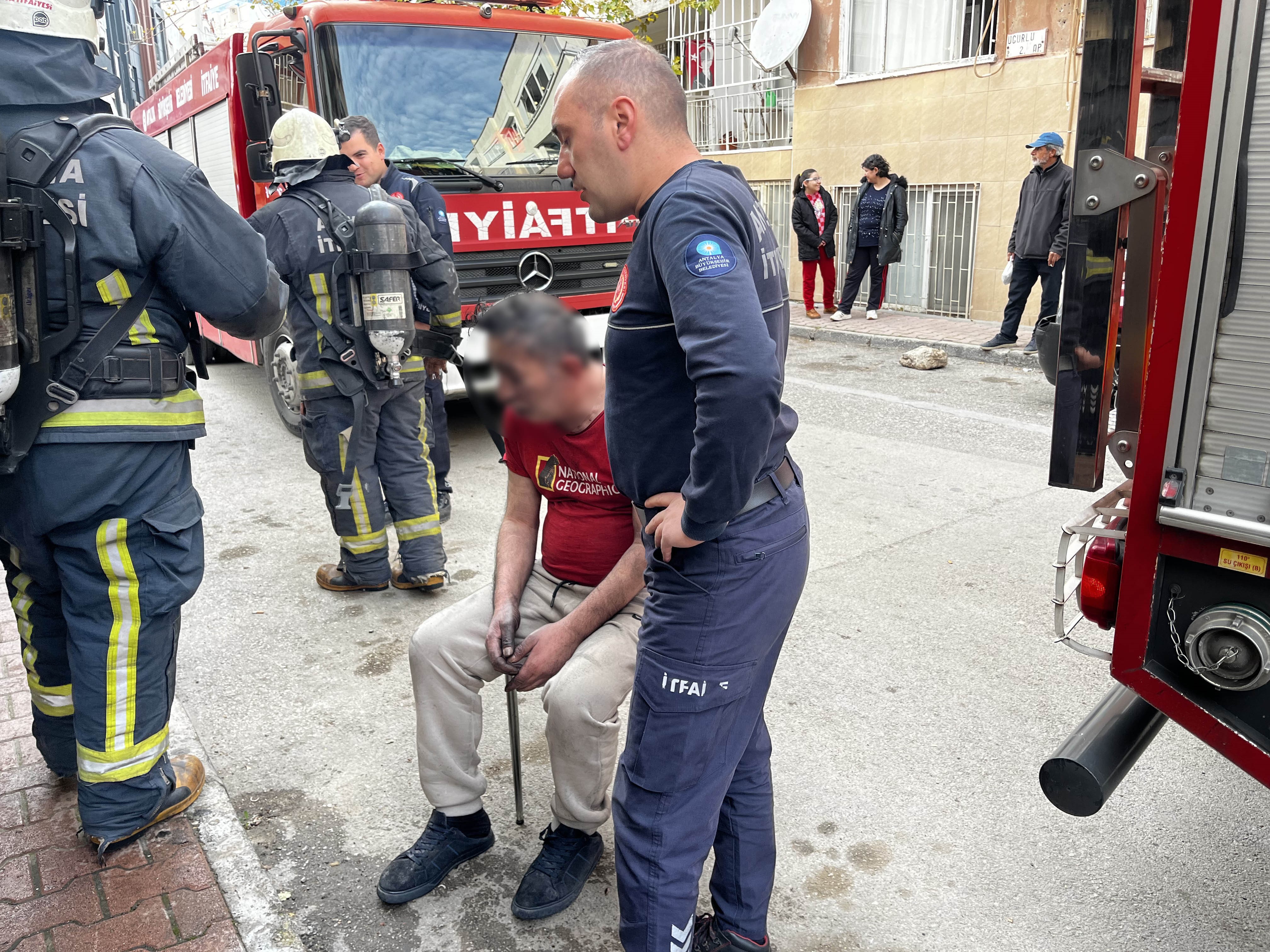 Sağlık ekiplerinin müdahalesine rağmen hastaneye gitmek istemeyen adamı ikna etmek için polis ve sağlık görevlileri uzun süre çaba gösterdi. Bu sırada 112 ambulans doktorunun Salih B.'ye, "Seni götüreceğiz, hava verecekler biraz. Kanına bakarlar, geri göndeririz. Temiz kıyafetin var mı?" şeklindeki sözleri dikkat çekti. Ekiplerin sakin ve ısrarlı yaklaşımı sonucu ikna edilen Salih B., ambulansla Antalya Eğitim ve Araştırma Hastanesi'ne götürüldü.Çıkış sebebi araştırılan yangının çöpe atılan sönmemiş izmaritten kaynaklanmış olabileceği ihtimali üzerinde duruluyor.