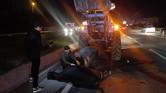 Görgü tanıklarının ifadelerine göre, karanlık nedeniyle hayvanı fark edemeyen bazı sürücüler ineğe çarptı. Çarpmanın etkisiyle inek telef oldu.