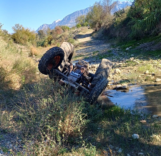 Antalya haber... Kaza, bugün saat 11.00 sıralarında Serik ilçesine bağlı Gebiz Mahallesi, Yunuslar mevkiinde meydana geldi. Edinilen bilgiye göre, 66 yaşındaki Osman Topal, 07 plakalı traktörüyle bölgedeki bir dere yatağından geçiş yapmaya çalışırken direksiyon hakimiyetini kaybetti.