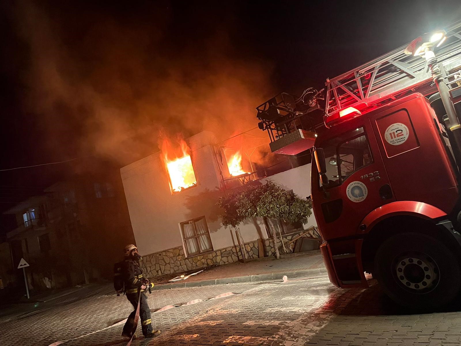 Ö.T.’ye ait evde çıkan yangının çıkış nedeninin belirlenmesi için inceleme başlatıldı. Olayla ilgili soruşturma devam ediyor.