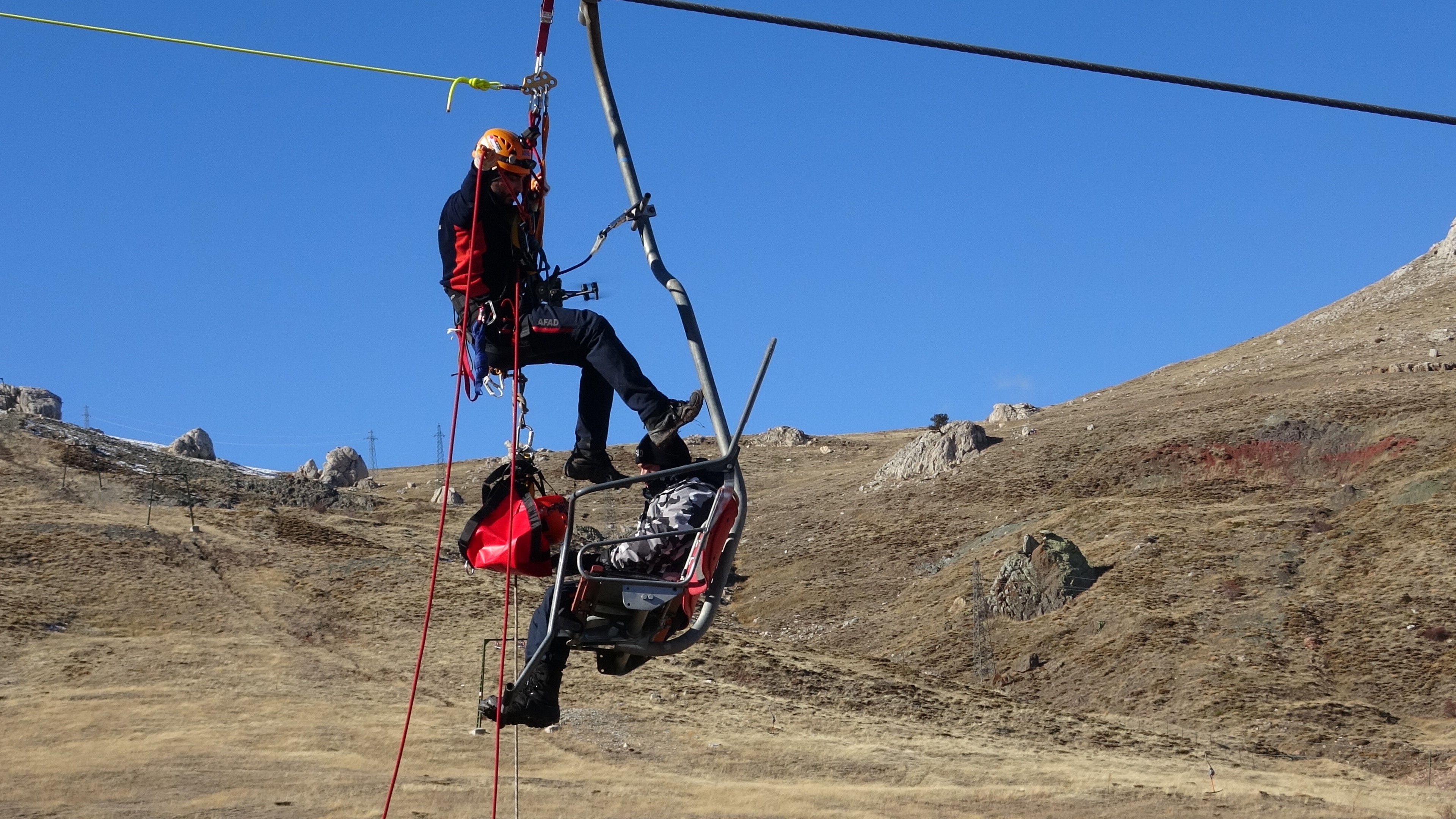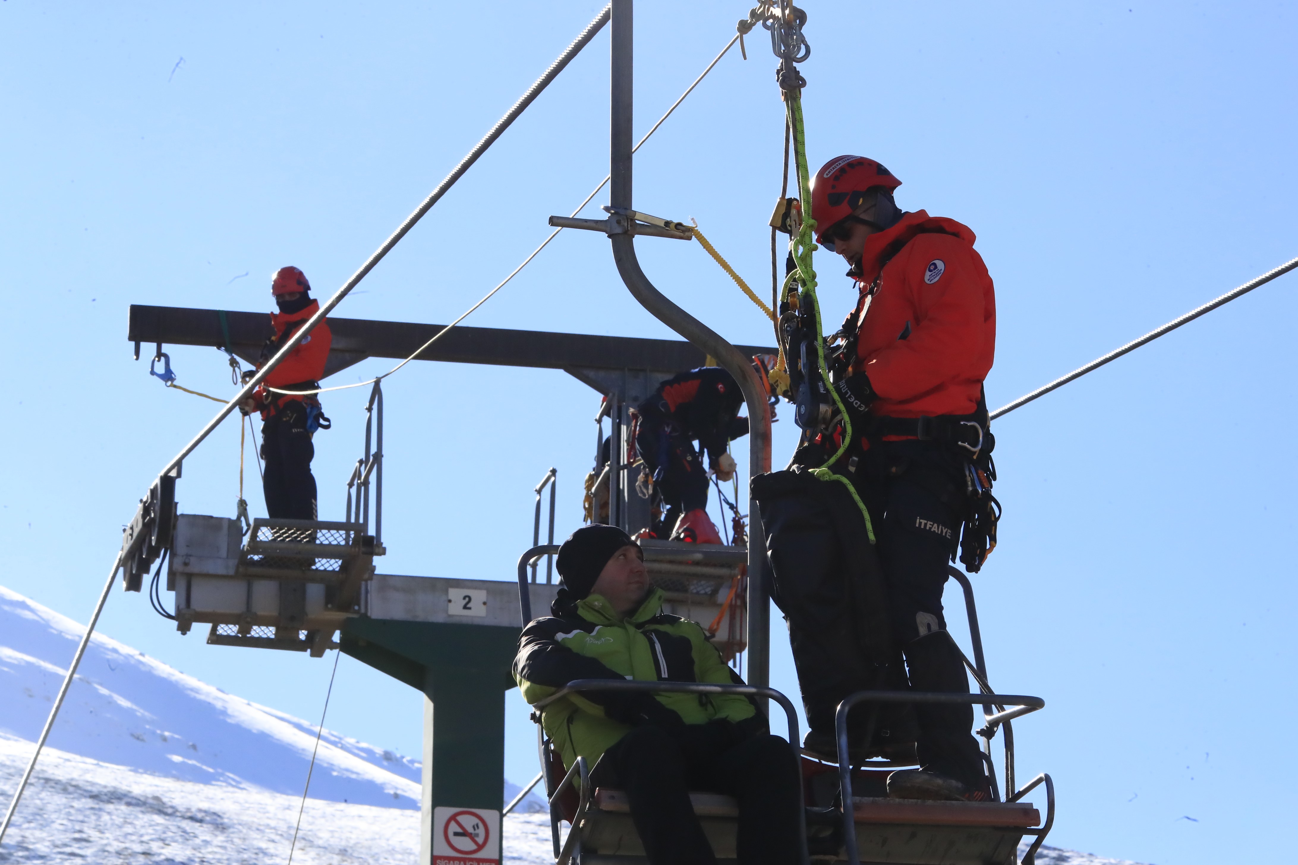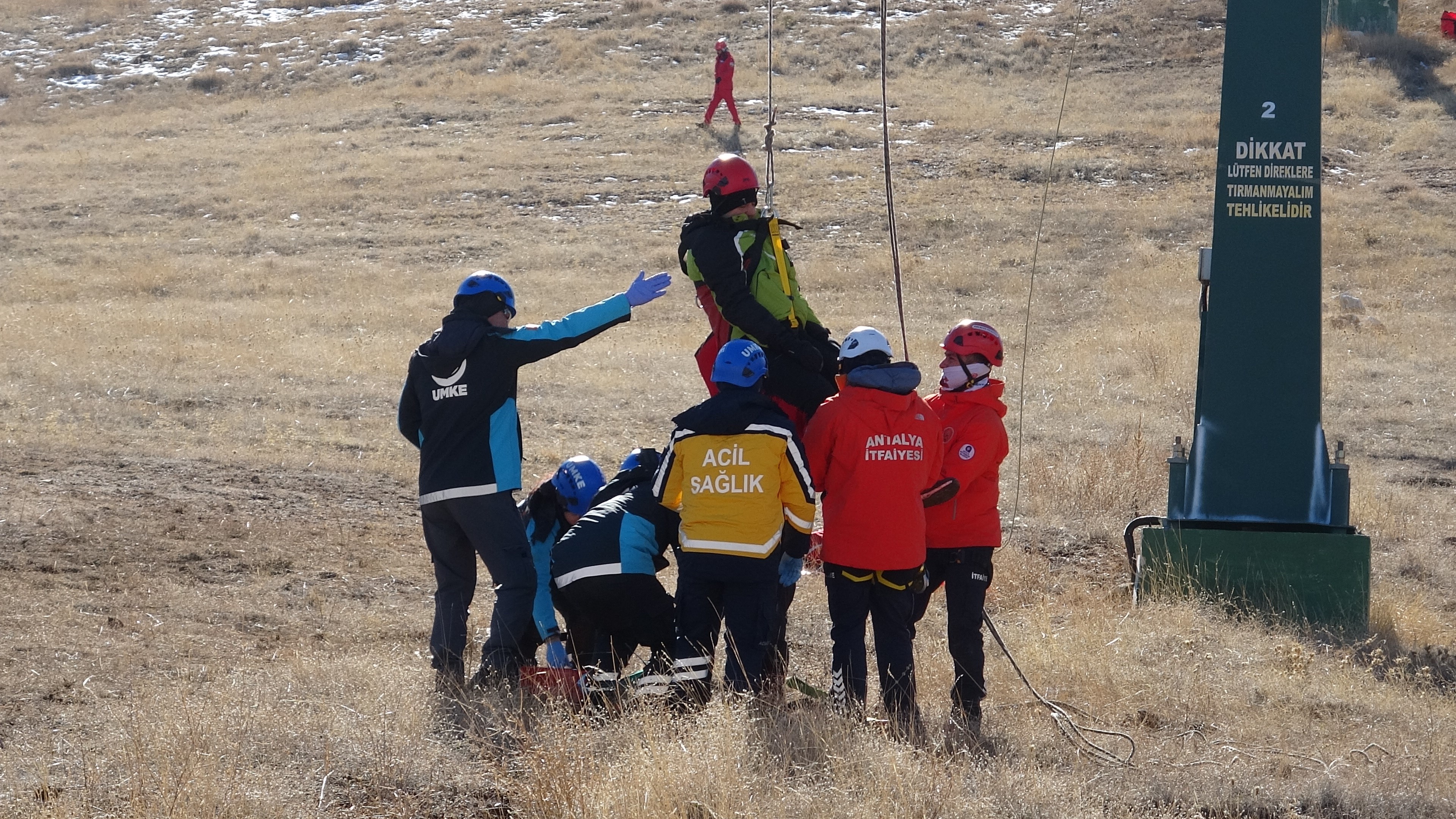 Antalya'da kış aylarında yerli ve yabancı binlerce turistin uğrak noktalarından birisi olan 2 bin 200 metre rakımlı Saklıkent Kayak Merkezi'nde JAK Tim Komutanlığı muhtemel bir afet durumunda yaşanabilecek mahsur kalma durumuna karşı ‘Teleferik Kurtarma Tatbikatı' yapıldı.
