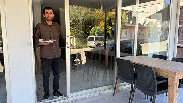 “Sipariş aceleydi, telaşla çıktım. Birkaç gün önce sildiğim camı fark etmedim, kendim çarptım. Mustafa hemen yetişti, tabağı elimden aldı. Daha kötü olabilirdi. Benden önce kuş vurmuş, hatta izi duruyor. Burnum çok acıdı ama iyi atlattık. İçeride müşteriler de vardı, onlardan özür diledik. Güzel bir macera geçti diyebilirim.”