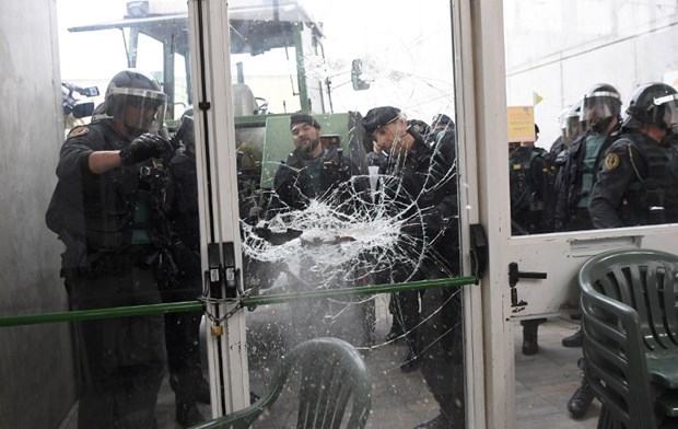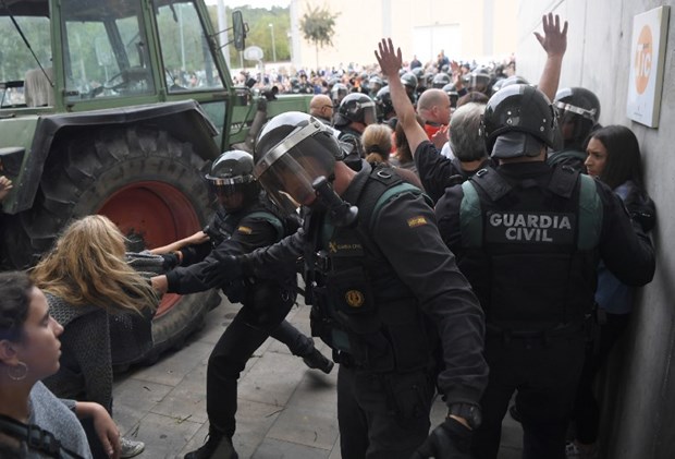 Katalonya Özerk Yönetiminde oy verilmesi için hazırlanan merkezlere İspanyol polisi ve jandarması baskınlar yaptı, bağımsızlık yanlılarının sivil direnişini kırararak, sandıklara ve oy pusulalarına el koydu. İspanya İçişleri Bakanlığı, yasa dışı bağımsızlık referandumuna izin vermediklerini ve tüm oy pusulalarına ve sandıklara el koymaya başladıklarını açıkladı. Baskın düzenlenen merkezlerden biri de Katalonya Özerk Yönetimi Başkanı Carles Puigdemont'in oyunu kullanacağı Girona kentindeki belediyeye ait spor salonu oldu. Buraya gelen yaklaşık 80 jandarma, kapı önünde barikat kuran bağımsızlık yanlılıarını dağıtarak, salonun kontrolünü ele geçirdi.