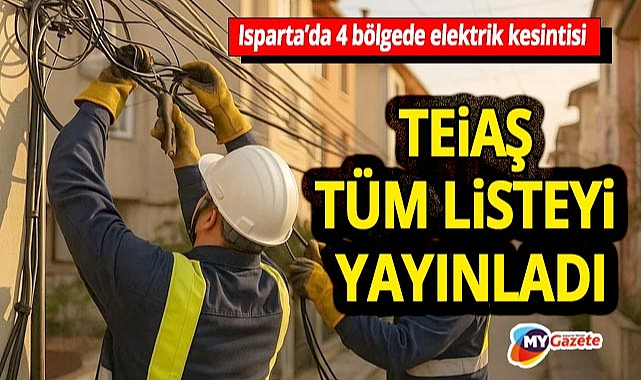 Türkiye Elektrik İletim A.Ş., tarafından yapılan açıklamada Isparta'da 4 bölgede kesinti yaşanacağı açıklandı. Keçiborlu, Merkez, Şarkikaraağaç ve Yalvaç başta olmak üzere birçok mahalle ve köyün elektrik kesintisinden etkileneceği açıklandı.