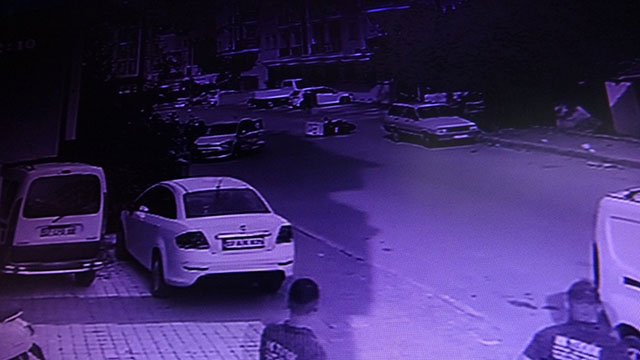 Öte yandan kaza anı, çevredeki bir iş yerinin güvenlik kamerası tarafından saniye saniye kaydedildi. Görüntülerde otomobilin sokaktan çıktığı anda motosikletle çarpıştığı, ardından vatandaşların yaralı sürücünün yardımına koştuğu anlar yer aldı.