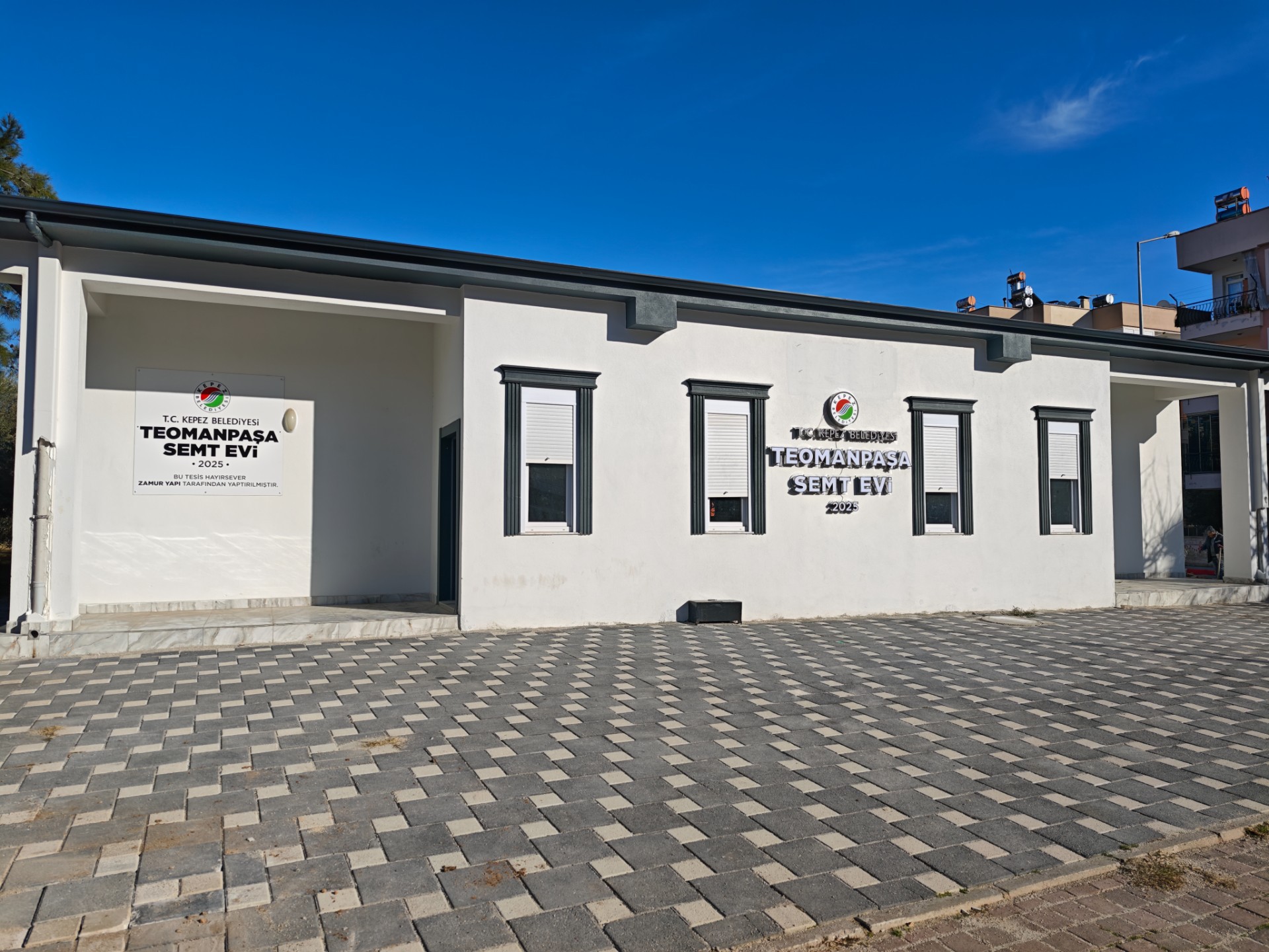 TEOMANPAŞA MAHALLEMİZE HAYIRLI OLSUNKepez Belediye Başkanı Mesut Kocagöz, semt evlerinin mahalle yaşamındaki önemine dikkat çekerek, “İsmi üzerinde semt evi, halkımızın olacak. Burada taziye dilekleri kabul edilebilecek, kültür, sanat ve sosyal etkinlikler düzenlenebilecek, toplantılar yapılabilecek. Semt evi, mahalle sakinlerimizin buluştuğu, kaynaştığı, acılarını ve özel günlerini paylaştığı bir ortam olacak. semt evi projemiz Kepez’imize ve vatandaşlarımıza hayırlı olsun” dedi.
