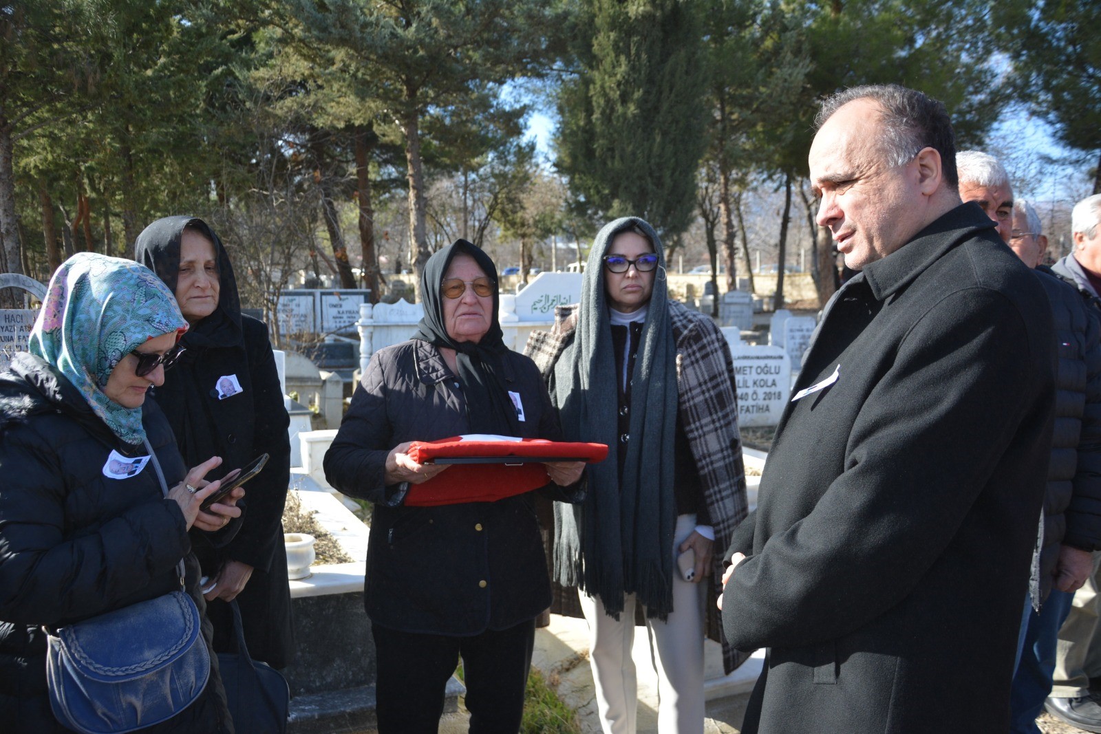 Defin sonrası Korkuteli Kaymakamı Sezgin Üçüncü, Şarlak'ın naaşı üzerindeki Türk bayrağı eşi Havva Şarlak'a teslim etti.
