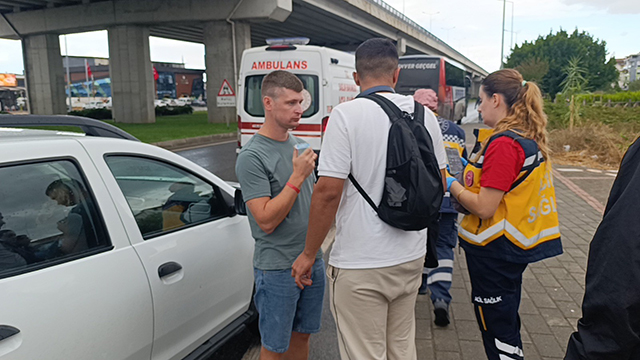 Kazada hafif şekilde yaralanan otomobil sürücüsü Andrei S., olay yerine gelen sağlık görevlilerince ambulansta tedavi edildi.
