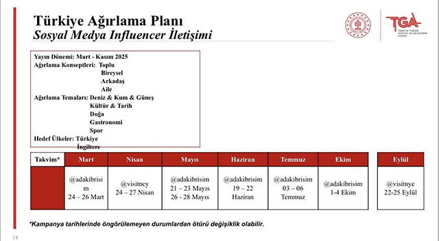 - Influencer Gücü: Türkiye'nin önde gelen influencer'ları aracılığıyla tarih, doğa, gastronomi ve birçok ürünün tanıtımı yapılacak.