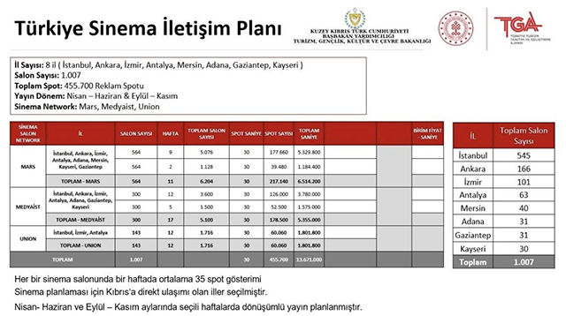 - Sinema Salonları: Türkiye'den direkt uçuş imkanı olan şehirlerdeki sinema salonlarında özel gösterimler.