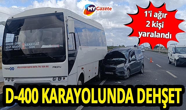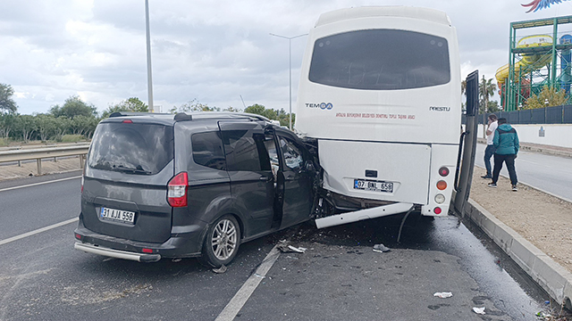 Antalya haber... Kaza, Alanya-Manavgat D-400 Karayolu üzerinde gerçekleşti. Edinilen bilgilere göre, A.İ. yönetimindeki 31 AJA 558 plakalı hafif ticari araç, yolcu almak için yavaşlayan E.S. idaresindeki 07 BNL 658 plakalı yolcu midibüsüne hızla arkadan çarptı.