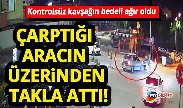 Çarpışmanın şiddetiyle motosikletten fırlayan sürücü, otomobilin üzerinden hızla takla atarak yol kenarına düştü.