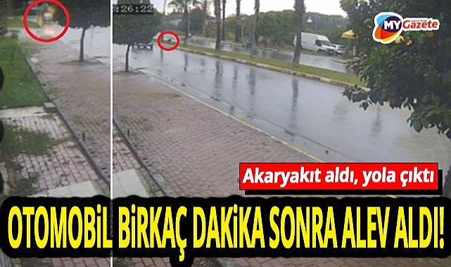 Ortaya çıkan güvenlik kamerası görüntülerinde, otomobilin seyir halindeyken bir anda alev aldığı, sürücünün ise hızla araçtan çıkıp kendini refüje attığı net şekilde görülüyor.