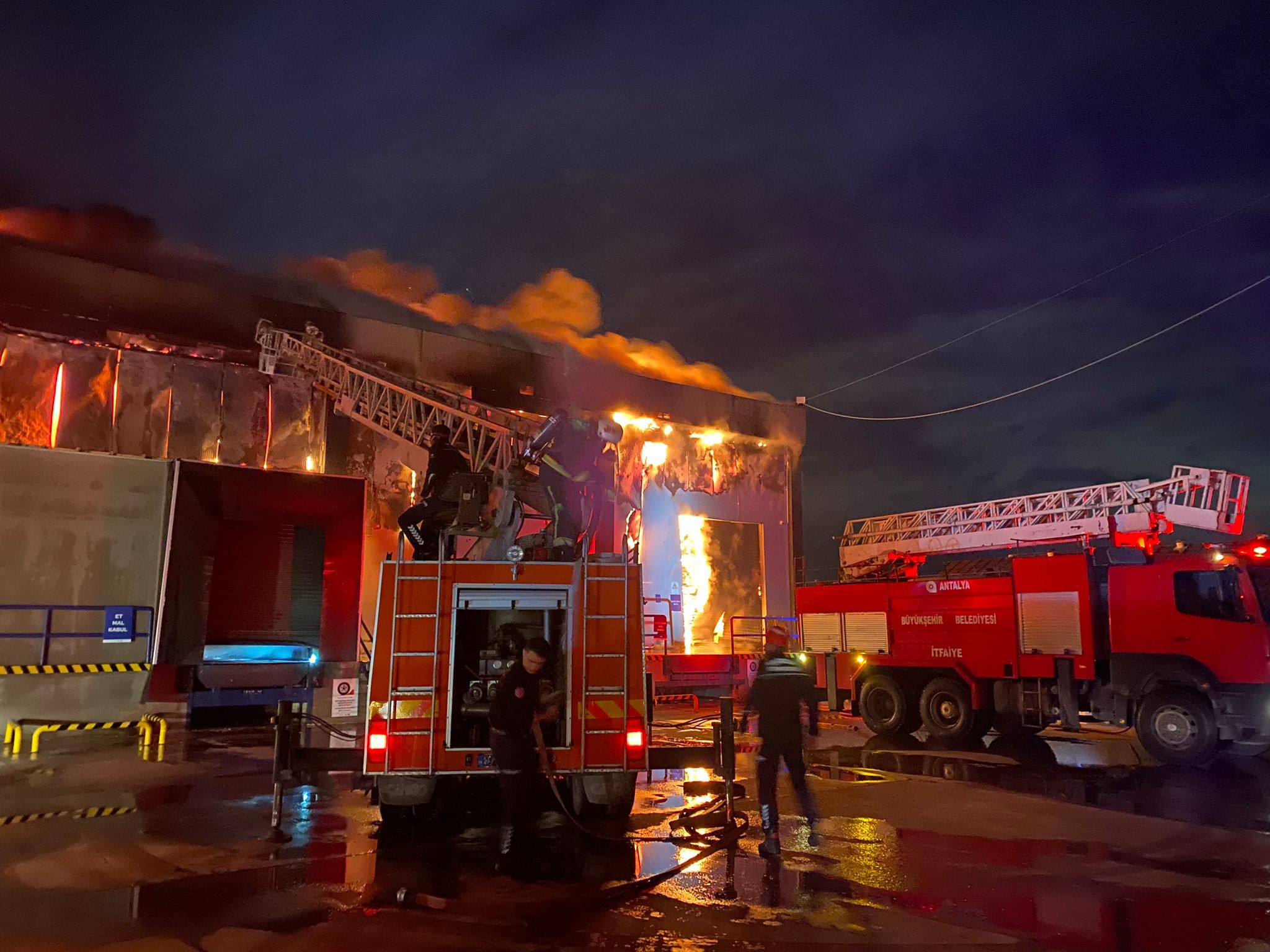 Yaklaşık 10 bin metrekarelik depo alanının 5 bin metrekarelik bölümünde, temel gıda ürünlerinin bulunduğu kısımda etkili olan yangını kontrol altına almak için ekipler yoğun çaba gösterdi. Büyük oranda kontrol altına alınan yangının çıkış sebebi henüz belirlenemezken itfaiye ekipleri, yangının çevrede bulunan plastik seralara sıçramaması için adeta zamanla yarıştı.
