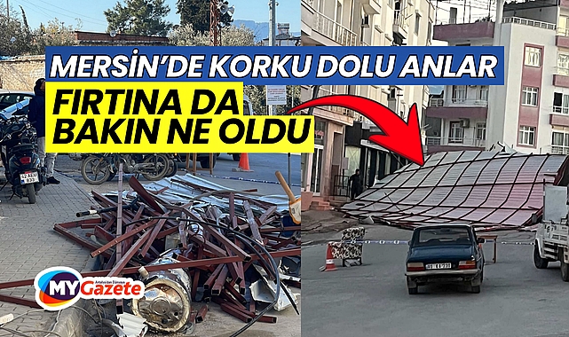 Mersin'in Mut ilçesinde etkili olan fırtına bir binanın çatısını yola savurdu. Olay, ilçeye bağlı Doğancı Mahallesi Mirza Bey Sokak cuma pazarı yanında meydana geldi.