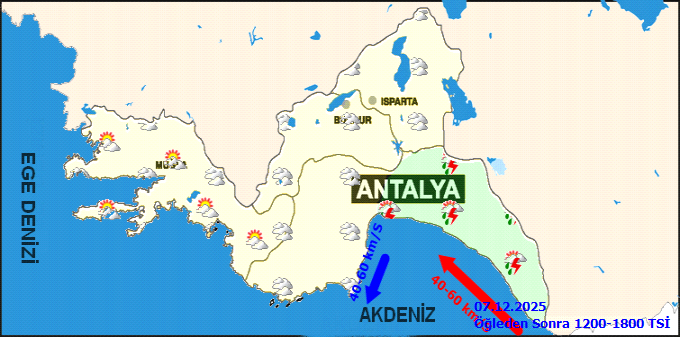 ANTALYA: Parçalı bulutlu, akşam saatlerinde yer yer kuvvetli olmak üzere bölge genelinin sağanak ve gökgürültülü sağanak yağışlı geçeceği tahmin ediliyor