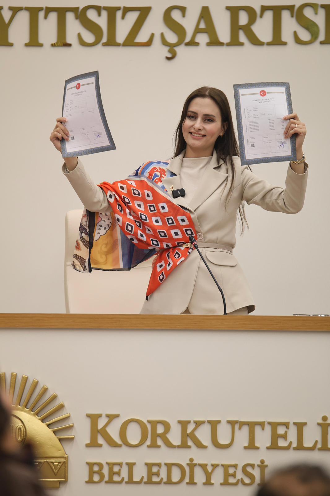 Belediye Başkanı Saniye Caran, ilçenin uzun yıllardır çözüm bekleyen ve adeta kanayan bir yarası haline gelen mülkiyet sorununa dair somut adımı attıklarını müjdeledi. Kürsüden, sürecin tamamlandığını gösteren tapu belgelerini paylaşan Başkan Caran, 394 Ada / 4 ve 5 parsellerin artık resmen Korkuteli Belediyesi’ne ait olduğunu duyurdu.