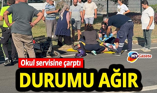 Antalya haber... Kaza, saat 15.50 sıralarında Ekmel Mahallesi D-400 Karayolu üzerinde bulunan Ekmel Kavşağı'nda meydana geldi. Edinilen bilgiye göre, Hüseyin Y. idaresindeki 07 UY 723 plakalı motosiklet, Anamur yönüne seyir halindeyken, bölgede bulunan bir okuldan öğrenci alıp ana yola çıkan Fevzi A.'nın kullandığı 07 C 50090 plakalı okul servis aracıyla çarpıştı.