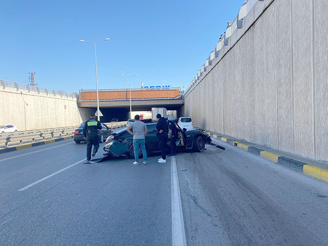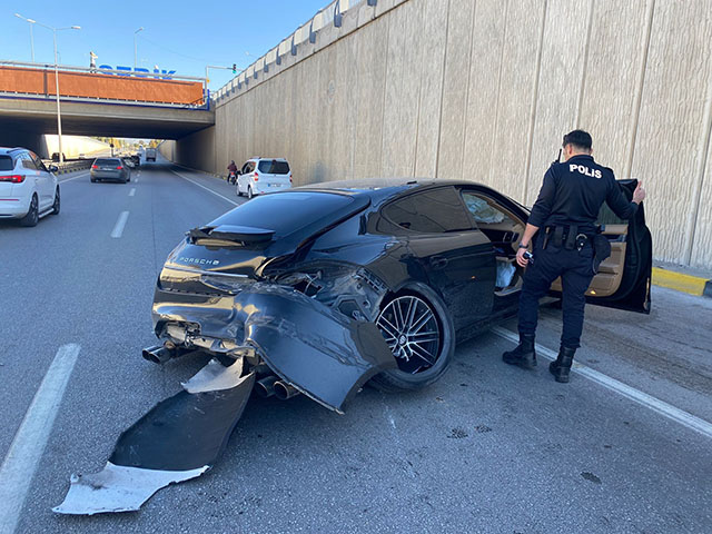 İlk çarpmanın ardından savrulan lüks otomobil, alt geçidin beton duvarlarına çarparak durabildi. Kazanın etkisiyle Porsche adeta hurdaya dönerken, sürücü Davut E. araç içerisinde yaralandı.