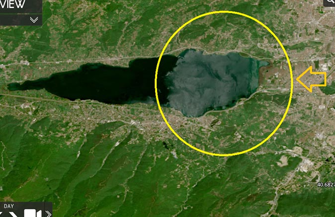 Deniz bilimci ve Kimyager Prof. Dr. Ahmet Cemal Saydam Prof. Saydam, Türkiye’nin önemli içme suyu kaynaklarından olan kirlilik tehdidi altında bulunan Sapanca Gölü’ndeki renk değişikliğinin uydu görüntülerini paylaşarak, “19 Mayıs 2021 Sapanca Gölü. Bu görüntüde gölün ortasından başlayıp Sakarya tarafına doğru gelişen bir renk değişiklik izlenmekte. Bunu yerelde izleyen var mı acaba?” diye sordu.