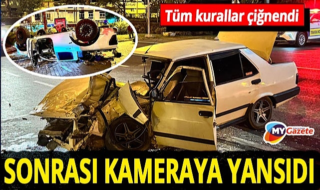 Çarpışmanın etkisiyle kontrolden çıkan pikap takla atarak orta refüjde sürüklendi ve trafik levhalarına çarparak ters bir şekilde durabildi.
